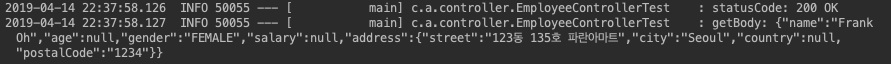 Controller에서는 getEmployee() 호출 시 응답으로 Employee 객체를 JSON 형태로 변환합니다. 예제를 실행해 보면 추가 설정 없이 자동으로 JSON 형태로 잘 받는 것을 알 수 있습니다.