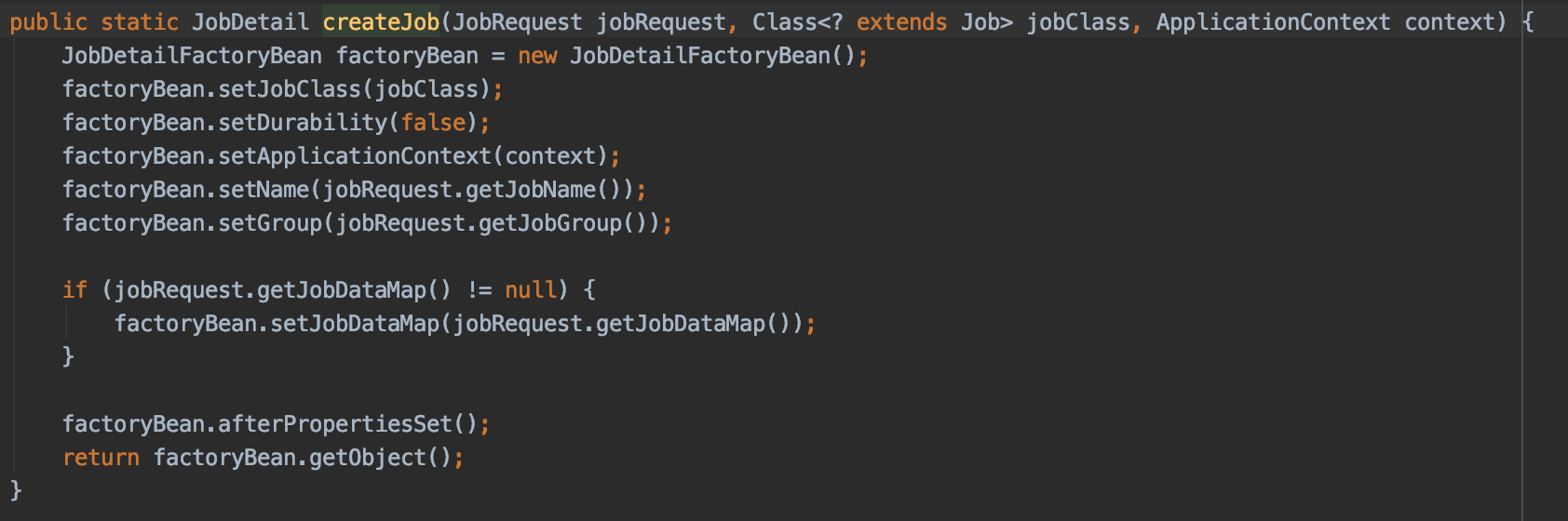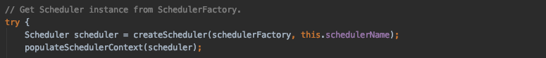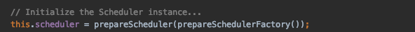 prepareSchedulerFactory() 메서드는 SchedulerFactory 인스턴스인 StdSchedulerFactory를 반환해서 prepareScheduler() 인자로 넘겨주고 Scheduler instance를 초기화한다