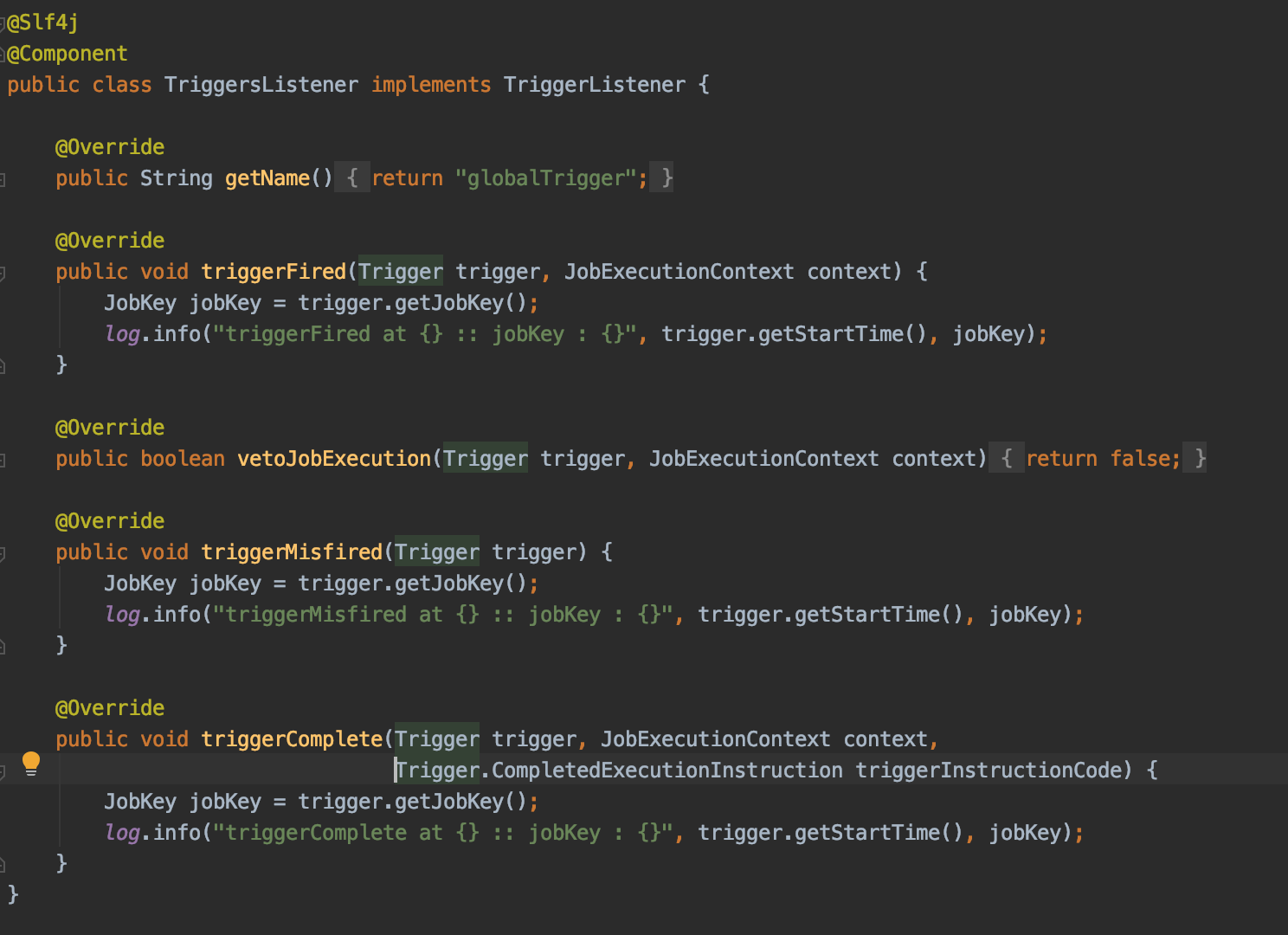 ==> JobRunShell.run()에서 job을 실행하는 과정에서 Job과 Trigger에 대한 listener 메서드들을 실행한다