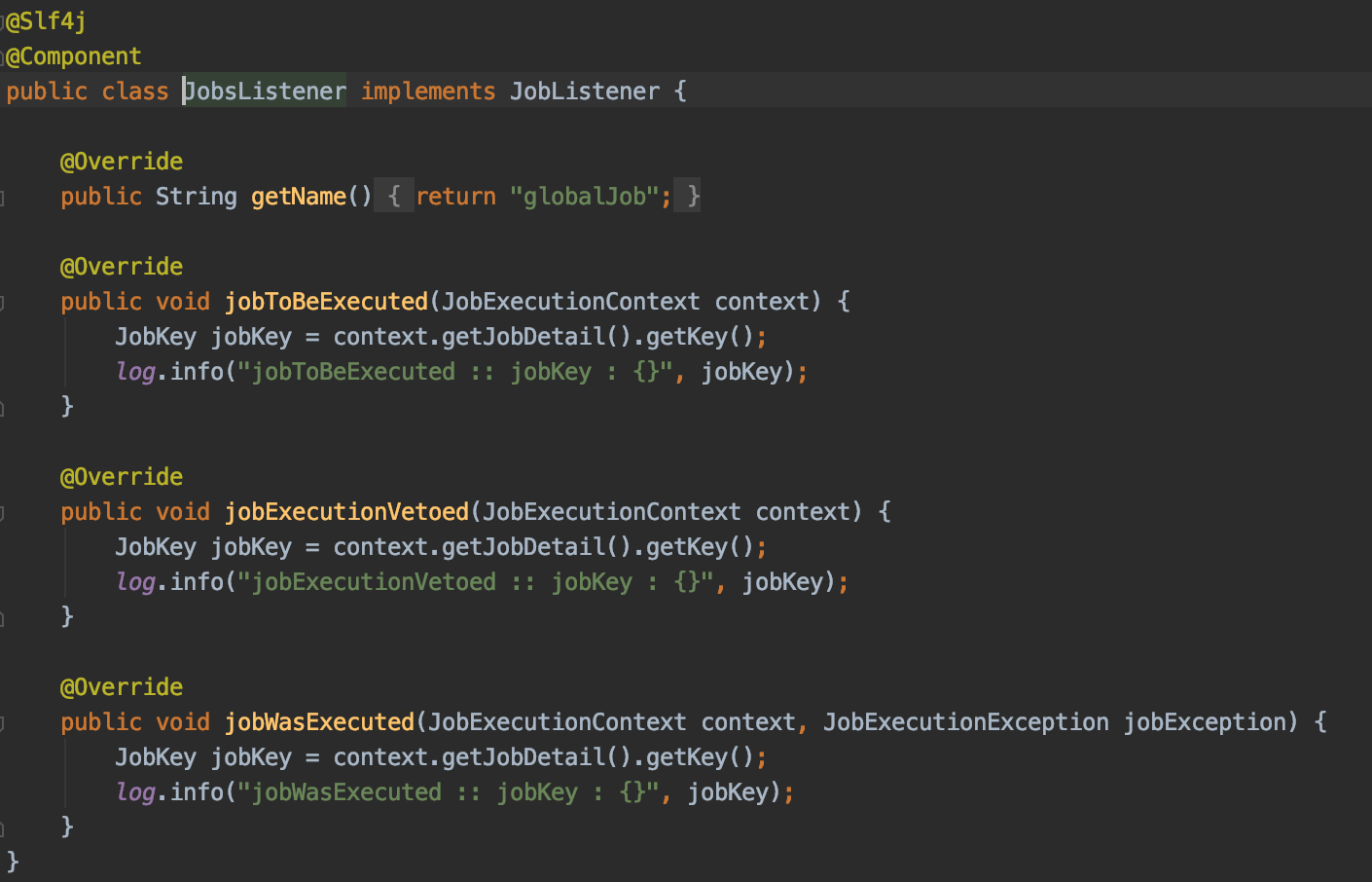 Listener는 Scheduler의 이벤트을 받을 수 있도록 Quartz에서 제공하는 인터페이스이며 2가지를 제공한다