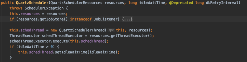 4.1 ==> QuartzScheduler 생성자에서 호출되고 QuartzScheduler 생성자는 StdSchedulerFactory.getScheduler() -> instantiate()에 의해서 호출된다