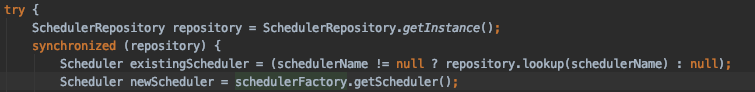 1.3 ==> Scheduler createScheduler(SchedulerFactory schedulerFactory, @Nullable String schedulerName)