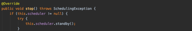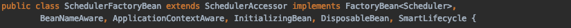 Quartz 스케줄러는 스프링의 컨테이너의 빈 LifeCycle 관리에 의해서 scheduler관련 설정이 초기화, 시작, 종료가 된다