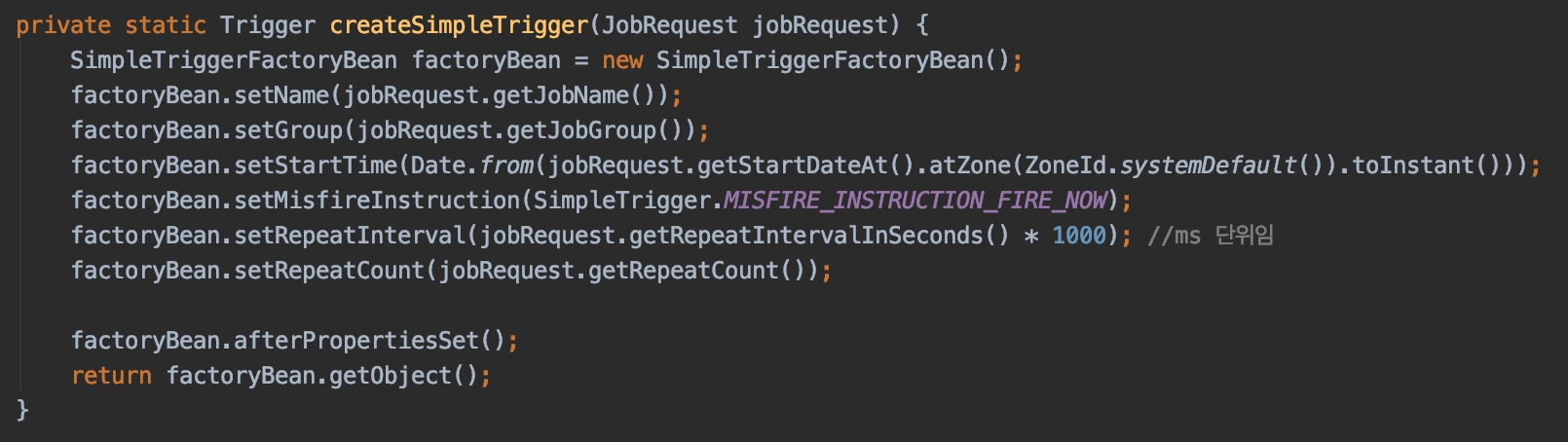 특정 시간에 Job을 수행할 때 사용되며 반복 횟수와 실행 간격등을 지정할 수 있다